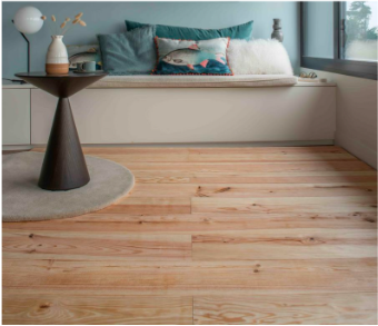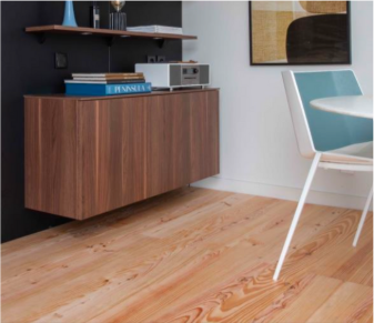 Nœuds sains de diamètre maximal 30mm présents sans limitation. Quelques nœuds de diamètre supérieur sont tolérés et rebouchés. Aspect chamarré, présence de discoloration et d'aubier sans limitation. Quelques traces de lattes ainsi que des petites fentes de cœurs sont admises. Parquet traité contre les termites et autres insectes.