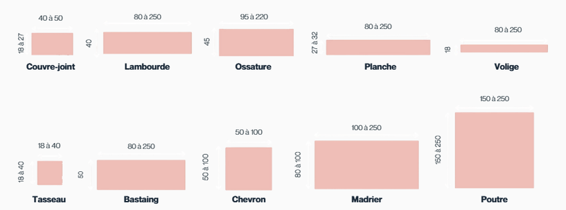 Bois d'ossature en Chêne / Châtaignier / Peuplier / Mélèze / Cèdre / Douglas / Sapin :
